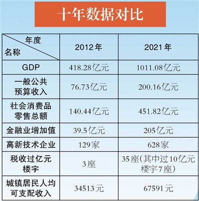 2012年,GDP418.28亿元;2021年,GDP攀升至1011.08亿元。