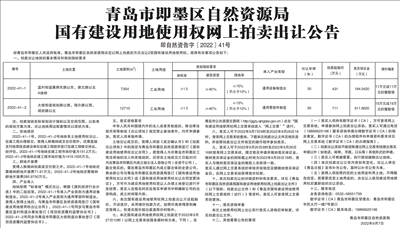 青岛市即墨区自然资源局国有建设用地使用权网上拍卖出让公告