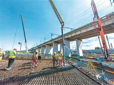 记者了解到,由于工程下穿胶济线、青连铁路、胶济客专、青荣城际4座铁路桥,7条铁路营业线,在施工过程中,如何确保既有铁路的行车安全是本工程的难点和重点。据青岛城投城市更新发展集团路桥公司副总经理张修亭介绍,铁路范围内严禁使用大型设备施工,且工序转换繁琐,交通压力大,施工工期极为紧张,为保证既有铁路桥行车安全,本工程均采用现浇形式桥梁下穿,尽可能减少大型吊车吊装作业,施工机具均采用改装后的低净距设备进行施工,通过增加机械设备数量及合理的施工组织以达到饱和施工目的,保障施工工期。
