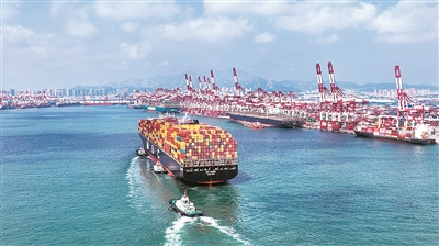 集装箱板块大船频靠,高效频出。在山东港口青岛港前湾三期集装箱码头,11个泊位全线开工,5条300米以上大船一字排开。400余名干部职工通过精细组织、周密计划,将原本需要65-70个小时完成装卸的“地中海思辛”轮,缩短至55小时,以单船在港装卸箱量21515TEU,创今年单船最大作业量;自动化码头全力打好突船疏港大会战,300米以上船舶“森罗上海”轮比原计划提前3小时离泊。