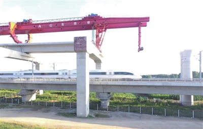 ■历经5天的紧张施工,潍烟高铁昌平特大桥上跨潍荣高铁营业线Ⅱ级运架梁施工于9月9日凌晨顺利完成,此次施工是潍烟高铁全线首次完成“高铁”跨越“高铁”运架梁任务。中秋假期期间,平度新河站的建设者们坚守岗位,加快推进项目建设,向着10月底主体结构封顶全力冲刺。