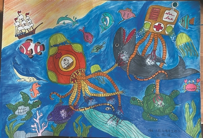风平浪静的海、波涛汹涌的海、记录着人类探索足迹的海、充满了未知神秘的海……海洋是青岛最鲜明的特色和最大的本土优势,时下的青岛正在奋力打造引领型现代海洋城市。本次比赛以“我和青岛的蓝色梦想”为主题,旨在引导广大中小学生关心海洋、认识海洋,从而在未来有能力经略海洋。比赛共收到作品近5万幅,学生们用画笔和巧手描画了精彩纷呈的蓝色逐梦之旅,从海洋生态环境保护到海洋资源开发利用,从海洋科学探秘到海底城市建设,从海洋国防到海底旅行……学生们的作品充满了想象和创意,饱含着对未来的思考和憧憬。
