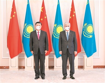 托卡耶夫热烈祝贺中国在习近平主席领导下取得伟大发展成就,预祝中国共产党第二十次全国代表大会圆满成功。托卡耶夫表示,习近平主席在新冠肺炎疫情发生后首次出访即选择哈萨克斯坦,又恰逢哈中建交30周年,这充分彰显了哈中之间的高度互信和哈中永久全面战略伙伴关系的高水平。我们将共同签署联合声明,表明双方坚定致力于开辟哈中关系新的黄金30年,这在当前动荡复杂的国际形势下具有特殊重要意义,相信习近平主席此访必将成为哈中关系发展史上的一个新的里程碑,为哈中永久全面战略伙伴关系发展注入新的内涵和动力。哈方将继续坚定奉行一个中国政策,做任何情况下中国都可以依赖的好伙伴、好朋友。明年是习近平主席提出“一带一路”倡议10周年,共建“一带一路”已经成为推动构建人类命运共同体的重要引擎,哈方将继续积极支持和参与。感谢中方为哈方抗击新冠肺炎疫情和经济建设提供宝贵支持,哈方希望同中方加强发展战略对接,密切各层级交往,深化经贸、基础设施、能源、制造业、科技、旅游、人文等各领域合作。哈方愿同中方一道,落实好全球发展倡议和全球安全倡议,在上海合作组织、亚信、“中国+中亚五国”等框架内密切协调和配合,共同维护地区安全稳定,促进共同发展。