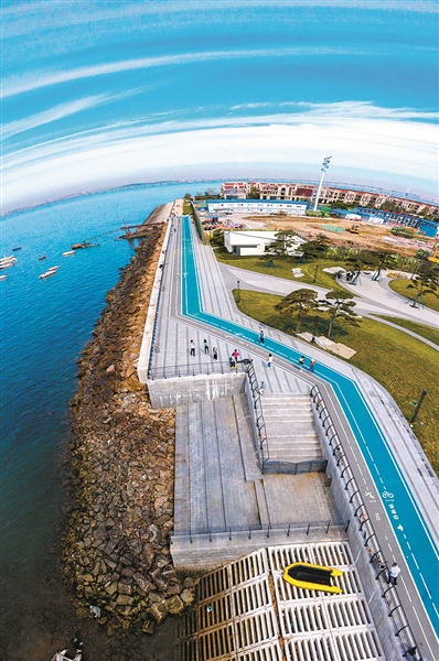 记者在市南区滨海绿道提升项目现场看到,沿海一线的步道已焕然一新,周边打造有“海乐园”等节点游园,增设驿站、指示牌等基础设施,吸引了不少市民游客在此处漫步、游玩。