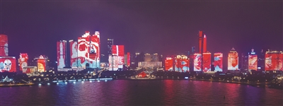 ■9月29日晚,青岛浮山湾国庆主题灯光秀进行测试。记者在现场看到,国庆主题灯光秀短片内容分为“日出东方”“盛世华诞”“国之山河”“国之人民”“普天同庆”五个篇章,营造出喜迎国庆的欢乐祥和氛围。    刘栋  摄影报道