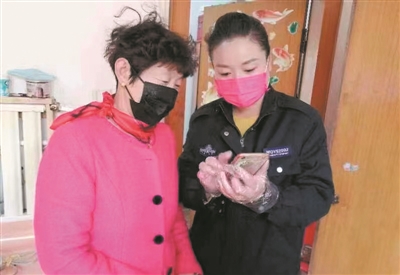 ■北宅街道专职网格员向社区居民讲解正确使用疫情防控健康码的方法。
