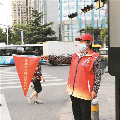 志愿服务在平凡中传递爱心,在点滴中传递关怀。每次戴上“小红帽”、拿起引导旗,64岁的金秀兰就把腰杆挺得很直。“这种红色是光荣的标志。”她说。作为一名文明出行引导志愿者,山东路与延吉路的交汇路口就是她坚守的“阵地”。