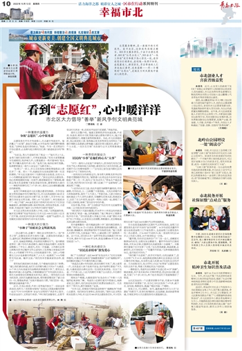 志愿服务精神,是一座城市的文明底色。在市北区,这份底色浓郁且醒目。800多支服务团队、十余万注册志愿者、860家“红色合伙人”、900余名“一线工作组”成员和数万热心居民一起,在防疫前沿忙碌奔走,在创城一线挥汗如雨,在孤寡老人、特困居民、寻求帮助的人们身边施以善举、送来温暖……那一片耀眼的“志愿红”,是城区文明风景线中最动人的色彩。