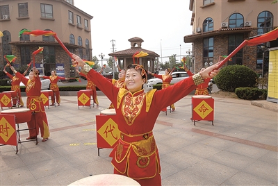 ■铿锵有力的鼓点,敲出了农村群众对幸福生活的无限热爱,灿烂的笑容,凝聚着村民对未来生活的美好憧憬。即墨区环秀街道王家庄村文化广场鼓乐喧天、喜气洋洋,村民们集合在一起,敲起喜庆的锣鼓,跳起欢快的秧歌,庆祝党的二十大胜利召开。 王涛 张涛 摄影报道