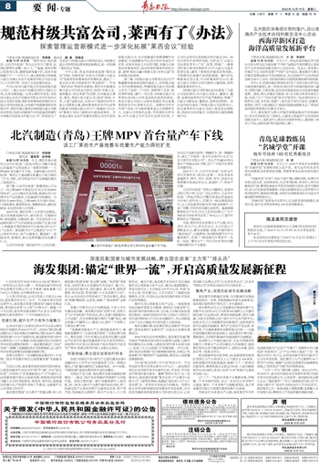 2020年7月,北京汽车制造厂总部从外省迁到莱西市,成为山东唯一、青岛首家具备越野车、轿车、货车、轻客、军车、改装车全资质整车制造总部企业,涵盖研、产、销全产业链。