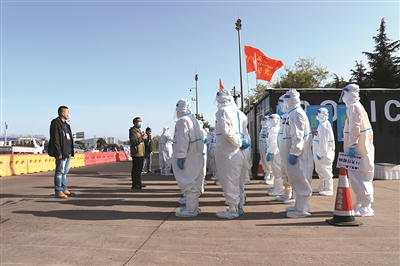 ■崂山区机关党员干部党员先锋队在疫情防控一线。