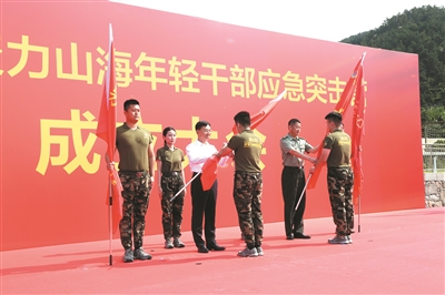 ■崂山区“聚力山海年轻干部应急突击营”成立大会暨授旗仪式。
