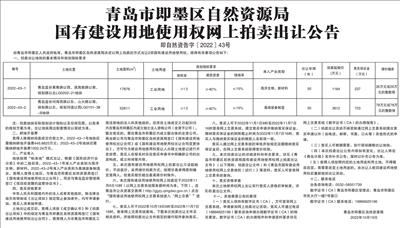 青岛市即墨区自然资源局国有建设用地使用权网上拍卖出让公告