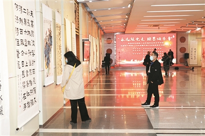 ■10月21日上午,“永远跟党走 翰墨颂华章”——青岛市无党派人士和党外知识分子书画作品展暨书画笔会在市文化馆开幕。