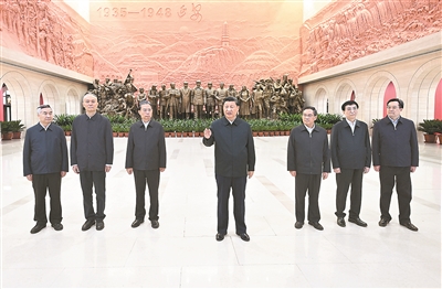 随后,习近平等集体乘车前往延安革命纪念馆,参观《伟大历程——中共中央在延安十三年历史陈列》。