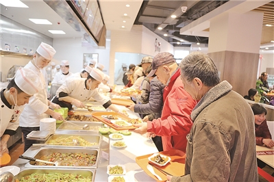 据街道工作人员介绍,该服务站一楼为助老餐厅,采取敞开式的管理运营模式,根据不同季节,每天供应荤素菜品16-18个,主食4-6类,汤品2-3类,菜品口味丰富,同时对老年人提供一定的减免,物美价廉,让老年人充分感受到服务站的方便。二楼为棋牌室、文化学习教育室等功能活动中心,老人就餐后可以在服务站里聊天、打牌等,进行一系列娱乐活动,丰富自己的生活。