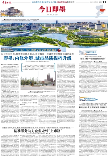 今年以来,即墨区以全国文明典范城市创建为抓手,坚持全域创建、系统整治,以民生为导向,聚焦难点堵点痛点,系统解决了一批城市建设管理领域的顽疾,城市环境品质和幸福宜居程度进一步提升,群众获得感、幸福感显著增强。