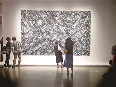无论是在对谈现场还是展览现场,丁乙以青岛的海为灵感创作的8件作品,都是观众话题的焦点。“西海美术馆这样的一片海滨建筑,给了我很多的创作灵感,7号厅展出的作品都是围绕西海美术馆这个特定的场域来创作的,这次展览内含的一个方向就是星辰与大海,能够看天看海看人文看建筑,可以对话的口径很多。西海美术馆成立一年来,已经引发全国艺术界的关注。这种关注,一个是因为地域——青岛是一个美丽的城市,还有一个原因是让·努维尔的建筑。”在全新创作的作品前,丁乙回忆了自己以这片海和建筑为灵感,在“读懂”城市与建筑师的过程中创作的细节。