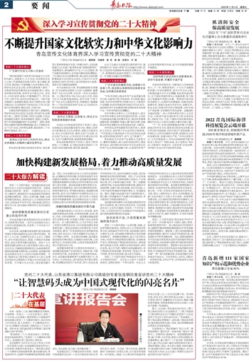 身着一套港口工装、胸前佩戴着党员徽章、手拿厚厚一沓笔记……从北京回来后,党的二十大代表、山东省港口集团有限公司高级别专家张连钢以党的二十大精神为指引,结合具体工作谈体会,投入到党的二十大精神宣讲中,“总书记铿锵有力的话语,为我们注入了无穷力量。面向未来,我们就是要在智慧港口建设领域树立标杆和样板。”