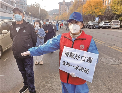 ■李沧区惠水书院社区居民自发组成志愿团队,参与疫情防控。 张 晋 摄