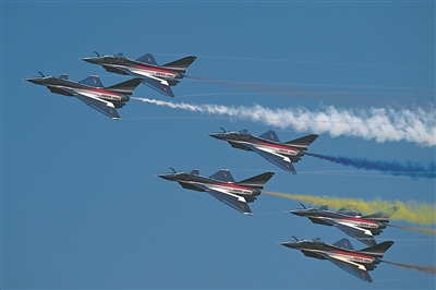 ■11月13日,第十四届中国航展闭幕当天,空军八一飞行表演队进行飞行表演。   新华社照片