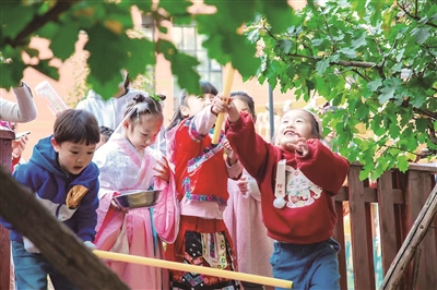 高安园之所以成为优质园,秘诀就在于幼儿园开辟了以课题研究引领发展的路子。如今,这个核心秘诀也正在向紫台园和宜阳园辐射。逄静介绍,此前,高安园将二十四节气项目课程的构建申报了青岛市教育科学“十三五”规划课题,并顺利结题。在此基础上,二十四节气主题活动的实践研究又成功申报为山东省教育教学研究课题。以课题研究为引领,紫台园和宜阳园的内涵提升就有了具体的载体,这也将最终让师生受益。