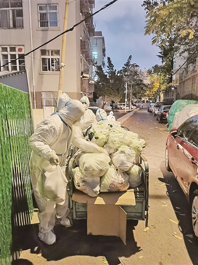 ■11月10日,市人大常委会下沉干部为大港街道封控小区送物资上门。 单位供图