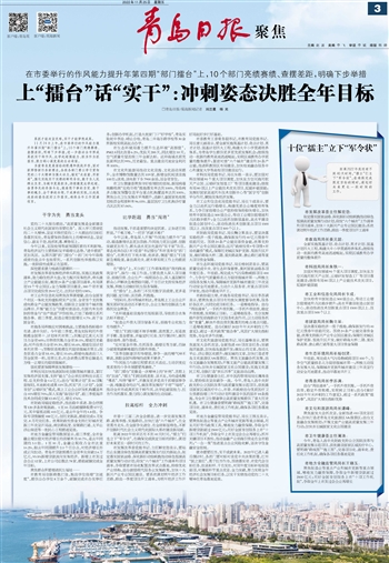 今年以来,青岛深入开展“作风能力提升年”活动,锻造激情状态更加昂扬、作风能力更加过硬、创新突破更加有力、源头活水更加充盈的“实干家”队伍。常态化举办区(市)党委“书记擂台”和市直单位“部门擂台”,在聚光灯下亮本领、亮承诺,倒逼“擂主”们直面急难险重,拿出真功夫、硬本事实现工作上的提质增效。