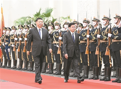习近平强调,中老两国山同脉、水同源,自古以来亲仁善邻。2019年4月关于构建中老命运共同体行动计划签署以来,中老双方凝心聚力,推动中老命运共同体建设取得丰硕成果,特别是将中老铁路打造成为中老人民的发展路、幸福路、友谊路,不仅为两国人民带来巨大福祉,也为共建“一带一路”和推动构建人类命运共同体提供了示范。新形势下,双方要牢牢把握两国关系正确方向,确保中老命运共同体建设不偏航、不失速;不断夯实安全根基,共同维护政治安全,推进执法安全和防务合作;要深化利益融合和发展战略对接,推动本地区互联互通和协调发展;深化经贸投资往来,中方将鼓励更多中国企业赴老挝投资,欢迎老方更多优质产品进入中国市场,中方将继续为老方纾解当前面临的困难提供帮助;持续拓展科技、教育、文化、旅游、卫生、青年等领域交流合作,增进民心相通。中方愿同老方深化在澜湄合作、中国-东盟合作框架内的协调配合,弘扬全人类共同价值,共同维护世界和平稳定和发展繁荣。