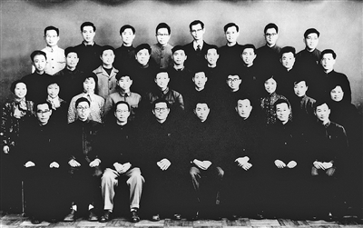 1963年3月,江泽民同志(前排右五)在上海同小型三相异步电机全国统一系列设计领导小组成员合影。