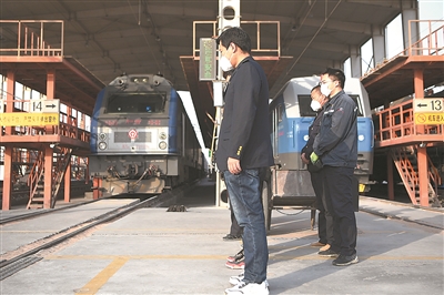 在中国铁路兰州局集团有限公司兰州西机务段东整备车间,机车鸣笛,干部职工肃立默哀。