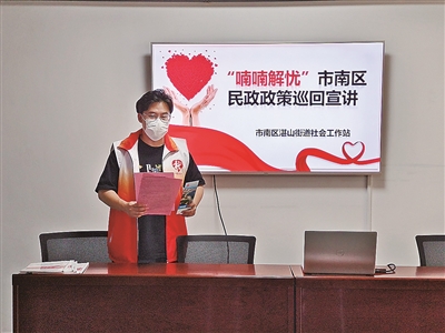 “我们积极引导社会力量参与社会救助,深化发展‘物质+服务’多维救助,推进服务类社会救助高质量发展。”市南区民政局社会救助科负责人史本文介绍,市南区大力打造“喃喃解忧”社会救助帮扶品牌,通过政府购买服务的方式,开展多样化、专业化、精准化的个案帮扶,缓解困难家庭的精神压力和生活压力。该项目已被省民政厅评为2022年度社会力量参与社会救助优秀项目。