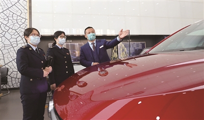 ■今年以来,国家税务总局青岛市市北区税务局以“作风能力提升年”活动为契机,积极落实国家新的组合式税费支持政策,以更加有力的措施为纳税人纾困解难。图为税务人员走进青岛喜盛迪汽车销售服务有限公司,调研企业享受新能源汽车国家税收优惠政策情况。