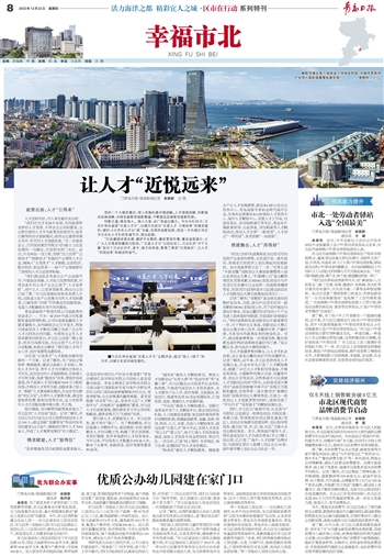 要引进人才,更要留住人才。市北区深知,留才贵在“留心”。为了精准赋能,市北区搭建人才赋能平台,拿出真招、实招、新招解决人才的后顾之忧,构建了更有获得感、更具归属感、更多幸福感的人才服务体系。今年以来,平台服务人才数量达500余人次,解决子女教育、家政服务、医疗保健等需求80余项。