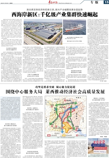 重点项目是经济发展的“生命线”,是拉动区域经济发展的强力引擎。2022年,新区共有总投资2226亿元的95个项目列入省市重点项目,数量、规模均位居全市第一。在青岛市实体经济振兴2022年中期调整重点建设项目清单中,共有项目220个,总投资3733.8亿元。西海岸新区有项目55个,总投资1323.3亿元,项目个数占比25.0%,投资占比35.4%;重点储备项目清单中,共有项目96个,总投资3598.7亿元。西海岸新区有项目31个,总投资2614.4亿元,项目个数占比32.3%,投资占比72.6%。新区正以重点项目为抓手,持续发力推动项目落地建设。