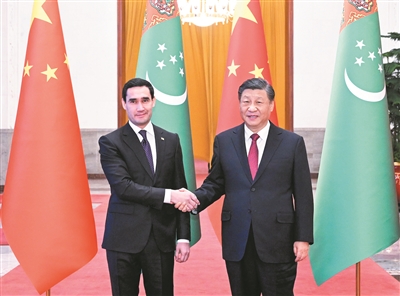 习近平指出,这是你就任总统后首次访华,今天又是中土建交纪念日,我们全面谋划中土关系下一步发展,共同宣布将两国关系提升为全面战略伙伴,意义重大。中国共产党正在团结带领全国各族人民以中国式现代化全面推进中华民族伟大复兴,土方正在积极推进土库曼斯坦复兴战略。中土两国理念相通,目标相似,利益相连,在发展振兴路上要携手努力,发挥互补优势,深挖合作潜力,实现共同发展。中方愿同土方一道,持续深化中土全方位合作,推动构建中土命运共同体,使两国关系在更高水平上向前发展。