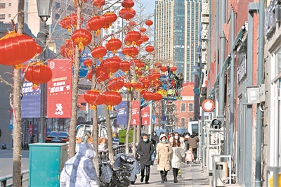 随着农历兔年春节脚步的临近,岛城大街小巷的年味越来越浓。记者在中山路看到,街道两旁悬挂起一串串火红灯笼,营造出浓浓的喜庆氛围。 于 滈 摄影报道