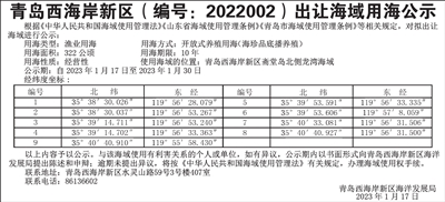 青岛西海岸新区(编号:2022001)出让海域用海公示