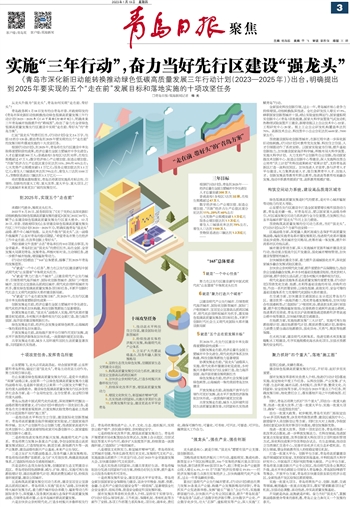 ~~~《青岛市深化新旧动能转换推动绿色低碳高质量发展三年行动计划(2023—2025年)》出台,明确提出到2025年要实现的五个“走在前”发展目标和落地实施的十项攻坚任务