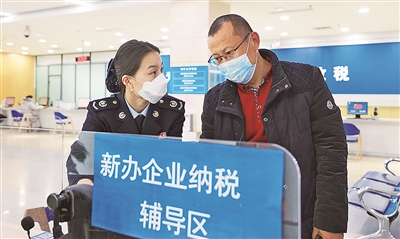 为了让新办企业熟练掌握各项涉税业务,切实享受税收政策红利,连日来,国家税务总局青岛市市北区税务局精准对接新办企业实际需求,开展“滴灌式”宣传,“点对点”辅导,不断提高服务质效,助力新办企业发展。图为税务人员正在辅导新办企业相关工作人员办税。