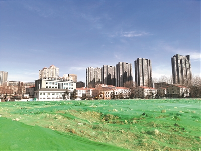 物美青岛城市更新项目是市北区城市更新和城市建设2023年一季度集中开工仪式分会场。记者在现场看到,该地块已完成土地平整,覆盖了绿色的防尘网,项目周边也立上了施工围挡,挖掘机和渣土车在会场旁一字排开,蓄势待发。