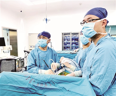 由于做过右肺早期肺癌手术,青岛市民胡先生每年都需要去北京做左肺结节复查,来回奔波看病的疲劳,让他苦不堪言。1个月前,胡先生复查结果显示恶性肿瘤复发,需要找北京专家手术,这次他却不需要辗转北京求医了。在北京大学人民医院青岛医院,北大人民医院胸外科专家李剑锋采用单操作孔胸腔镜手术,将胡先生左肺上的目标肺段顺利切除。