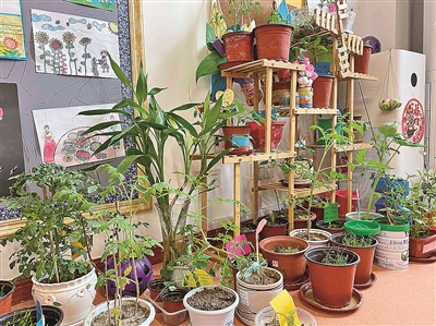 不仅如此,城阳区育才小学还把厨余垃圾制作酵素设计为课程,教会孩子劳动技巧。而为了充分发挥“小手拉大手”的作用,育才小学还组织学生们利用家里的废旧物品制作出精美的小工艺品,来装饰自己的教室。