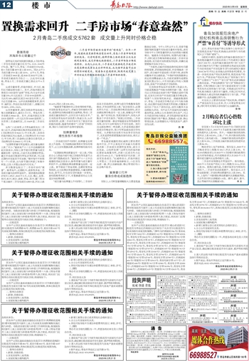 楼市观察~~~2月青岛二手房成交5762套 成交量上升同时价格企稳