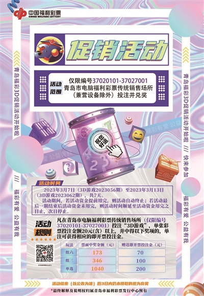春暖花开,万物复苏。青岛福彩推出3D游戏促销活动,为广大彩民朋友送上福利。