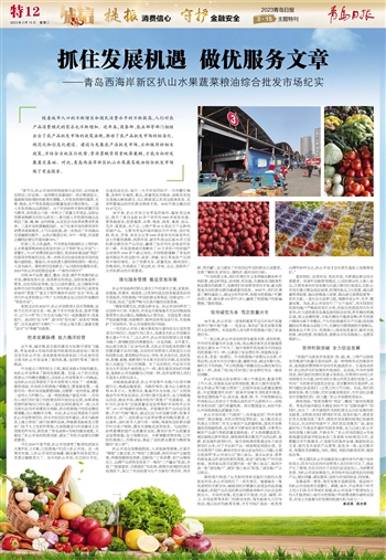 阳春三月,生机盎然。作为青岛市政府民生工程的扒山水果蔬菜粮油综合批发市场(以下简称“扒山市场”)一派繁忙,“3·15”消费者权益日期间,笔者沐浴着全国“两会”的春风专程来到这里,再一次探寻这处综合批发市场的发展兴盛经验。落座后,市场负责人薛同荣经理的一席话让人甚为高兴。薛经理自信地断言:“从目前的发展势头看,2023年扒山市场经营会迎来一个新的丰收年!”