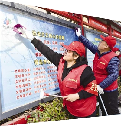 创建全国文明典范城市,群众既是受益者,更是主体力量。目前,由60余个区直部门、单位组成22个“一线工作组”下沉街道,与包联街道的党员志愿服务队一起,利用周末时间,奋战在清理小广告及废弃杂物、规范车辆停放、劝阻不文明行为等创城一线。与此同时,市北区的楼组长、网格员、老党员、志愿者、公益岗等基层治理力量也加入志愿队伍,忙碌在市北区的大街小巷,引导广大市民将文明行为变成自觉行动。