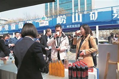 在旅发大会主会场通道处、中航翔通游艇会以及中山路游览线路,青岛饮料集团举办崂山三绝万人畅饮活动,以全力服务重大活动的国企担当与责任,为环卫、交警、城管等大会工作人员以及来“打卡”的市民、游客免费提供崂山矿泉系列饮料。