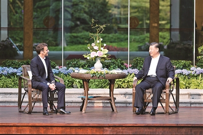 习近平热情欢迎马克龙访问广州,表示很高兴同马克龙总统再次相聚畅谈。