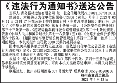 《违法行为通知书》送达公告
